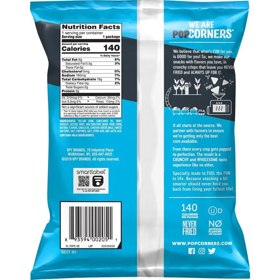 Fritolay Popcorners White Cheddar is a delicious snack from Fritolay. Enjoy its tasty flavor and convenient packaging for on‑the‑go snacking.